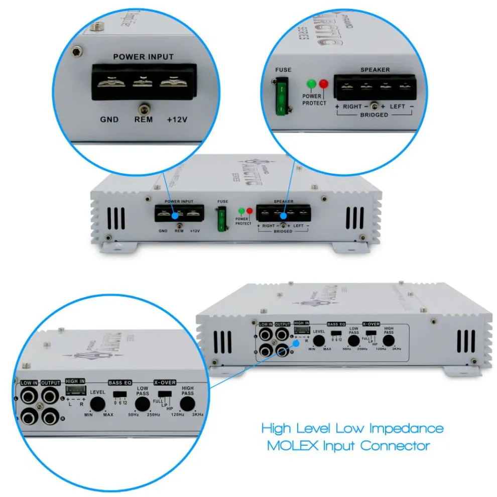4-Channel Car Amplifier 2000W Power MOSFET Silver RCA Inputs