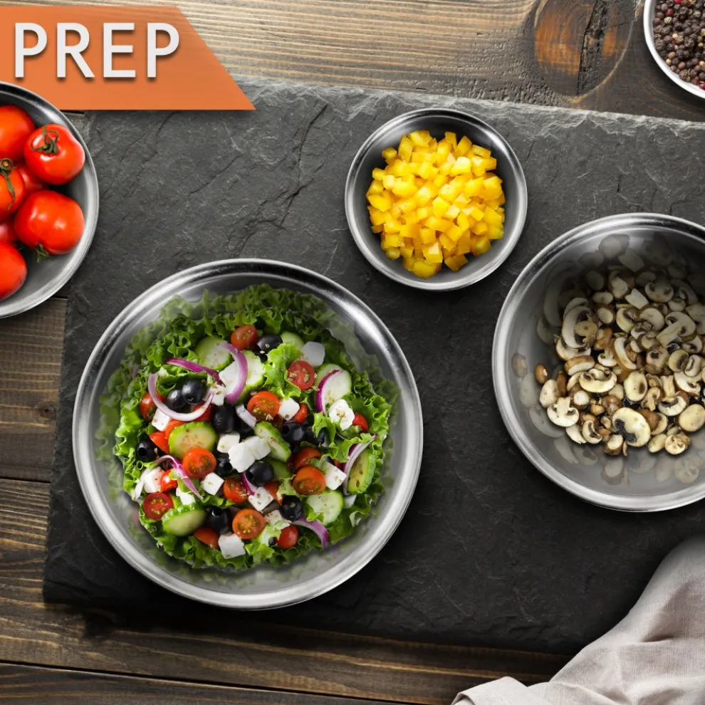 - QUALITY STAINLESS STEEL: The easy-clean stainless steel refrigerator safe food storage bowls are made of commercial-grade stainless steel metal w/ attractive sleek polished mirror finish for an elegant look. Highly durable shatterproof, and rustproof