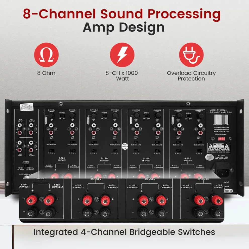 - MAX Power Output: 8-Ch. x 1000 Watt
