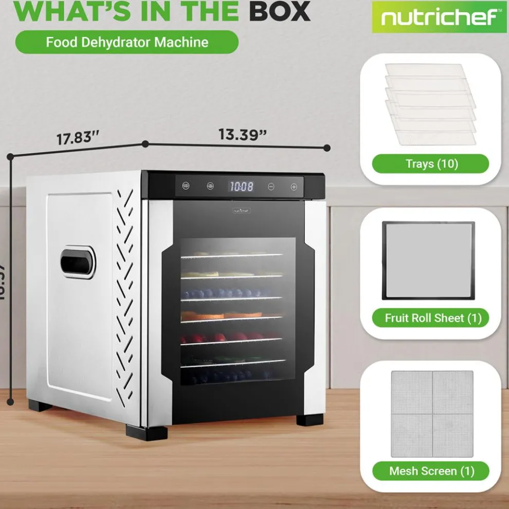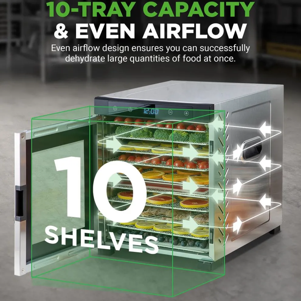 - Large Capacity with 10 trays and Up to 13 lbs. of Food Dehydrate at once