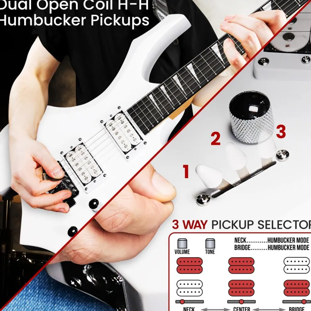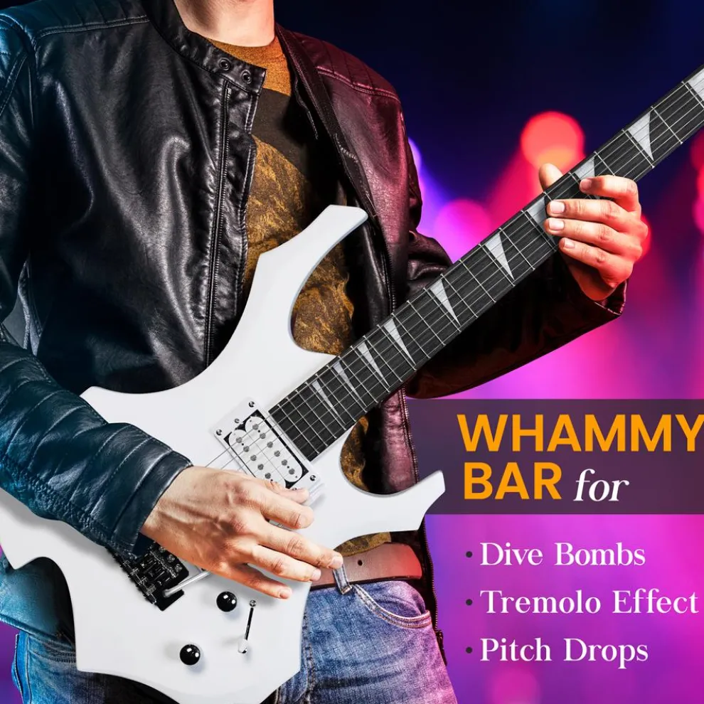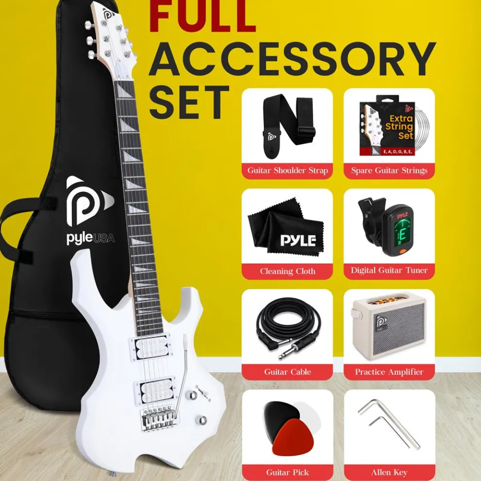 - With Guitar Cable, Allan Key, Tremolos Rod, Gig Bag, Spare Electric Guitar Strings, Detachable Shoulder Strap, Digital Tuner, and Celluloid Picks Accessories
