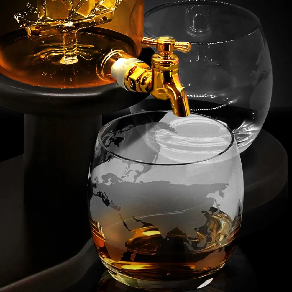 - World Map Etched-Texture Whiskey Glass Design