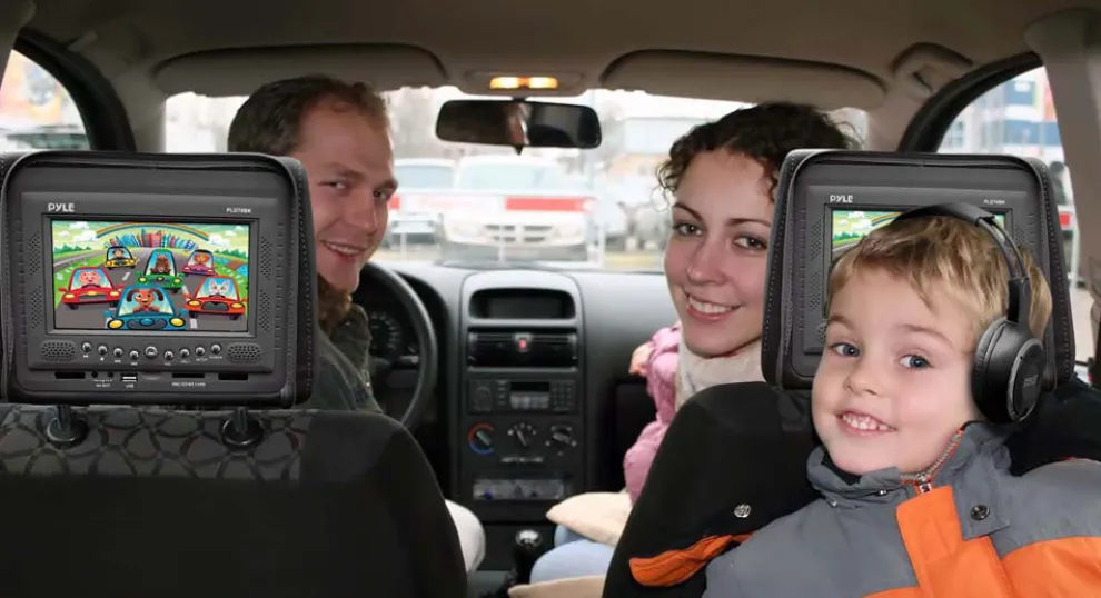 - 7” TFT monitor w/built in DVD player – Aspect ratio: 16:9 wide screen – Pal/Ntsc compatible – Built in IR transmitter for wireless IR headphones – Double channel for two audio source – Numbers of headphones can be used simultaneously in the car