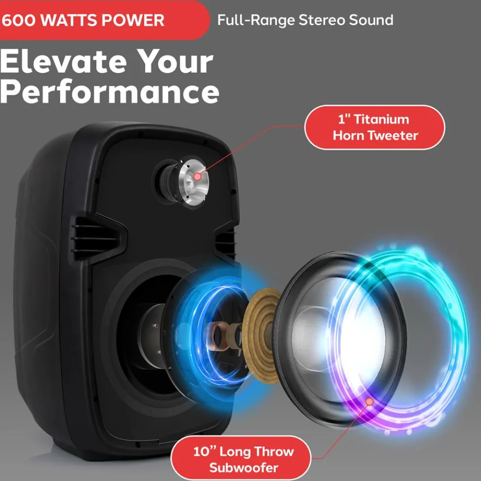 - Sound System: (2) 10’’ Speakers, (2) 1’’ Tweeters