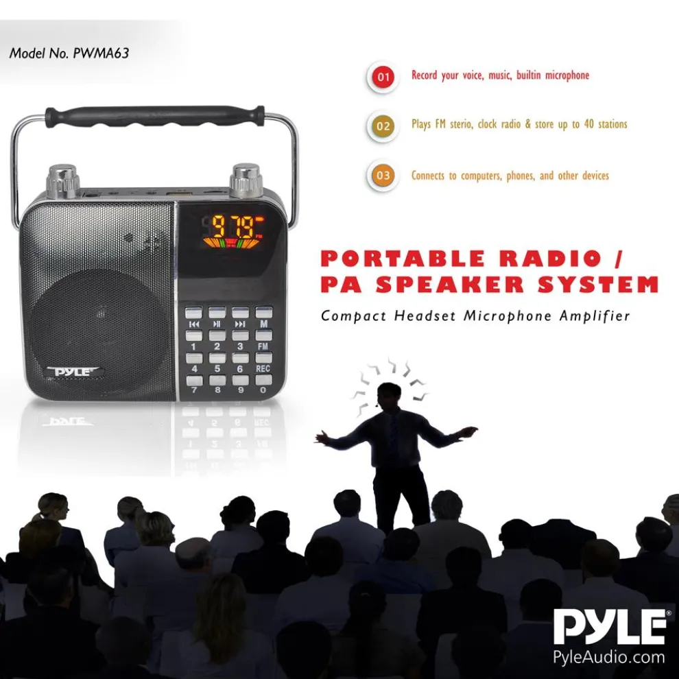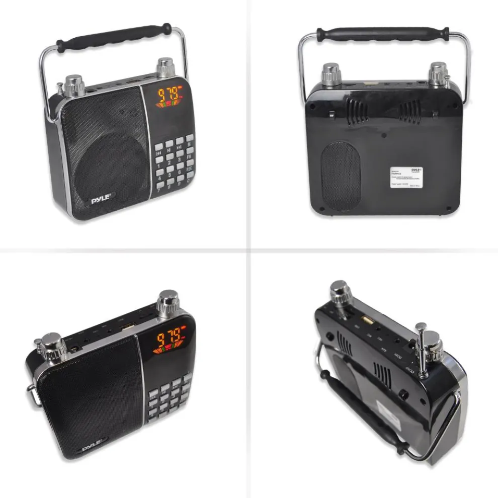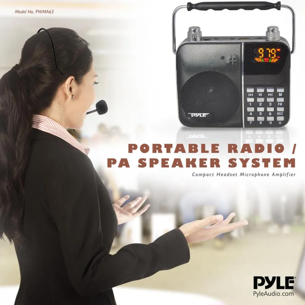 - Built-in Rechargeable Battery – Headset Microphone Included – Aux (3.5mm) Input – Ability to Connect & Stream External Devices – MP3 Digital Audio File Compatibility – USB & Micro SD Memory Card Readers – MAX Flash Memory Support: 32GB