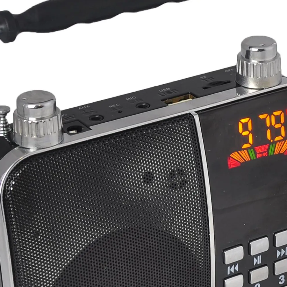 - Full Battery Provides up to 6 Hours Operation – Loudspeaker Driver: 3” – Impedance: 4 Ohm – S/N Ratio: >80dB – Power Supply: 110/220V – Digital Audio File Support: MP3, WMA, WAV