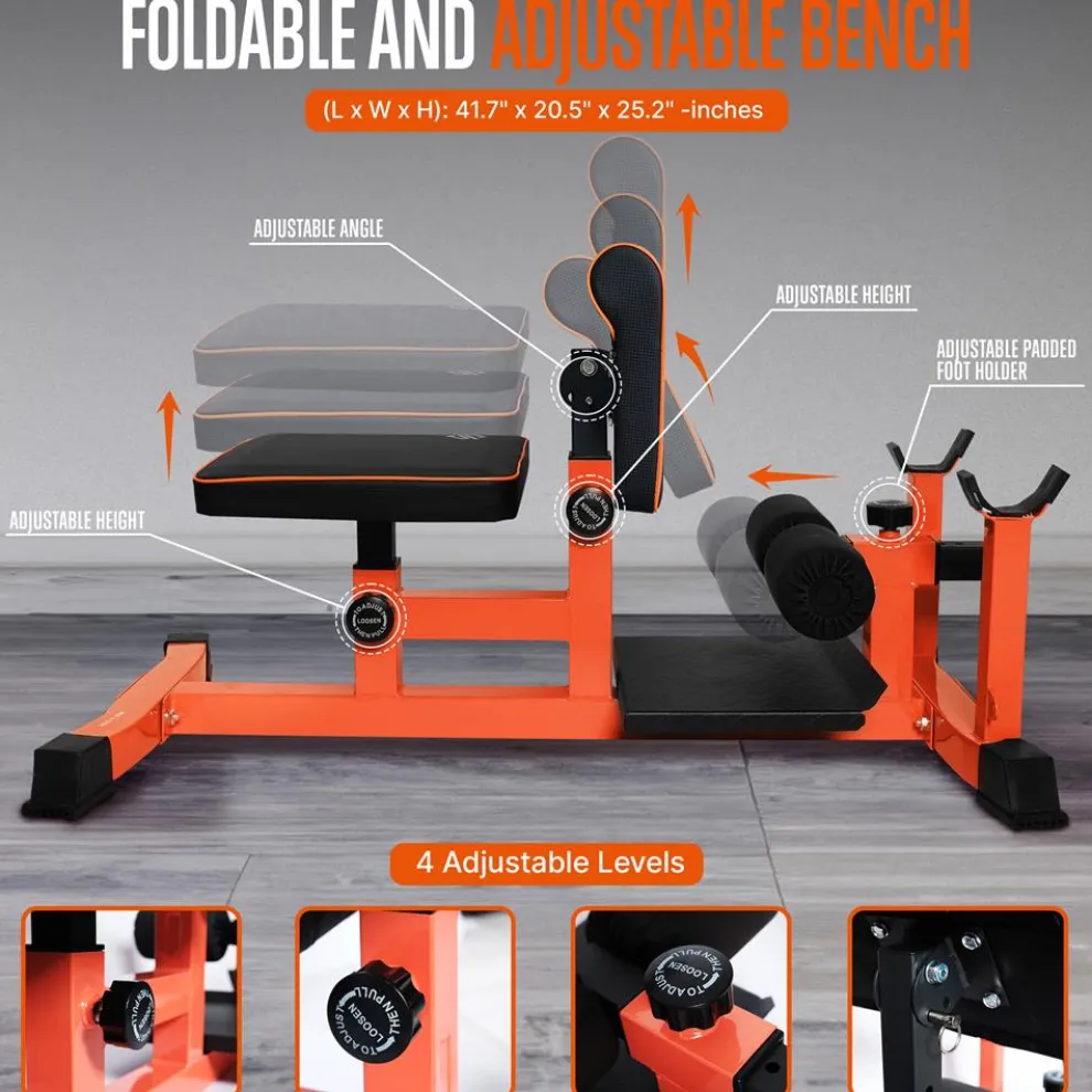 - FOLDABLE AND ADJUSTABLE BENCH: Featuring an ergonomic design, this squat bench can be adjusted to fit different body shapes. It also has foldable and adjustable cushions and bench with adjusting foam foot holders for your convenience