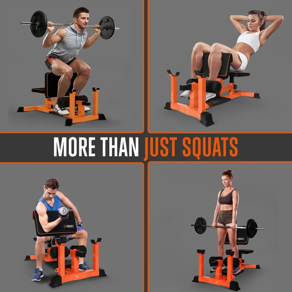 - NO ASSEMBLY NEEDED: This workout bench for squatting can be used immediately after unpacking as it does not require any further assembly. It is also easy to use, easy to store, and comfortable with its rear cushion for feet and legs