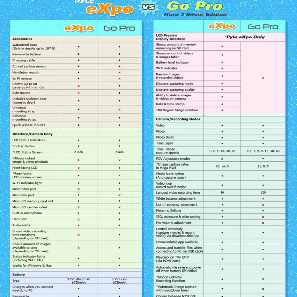 - Also includes USB charging cable, removable battery, Wi-Fi remote charging dock, bicycle mount and other fasteners/clip accessories