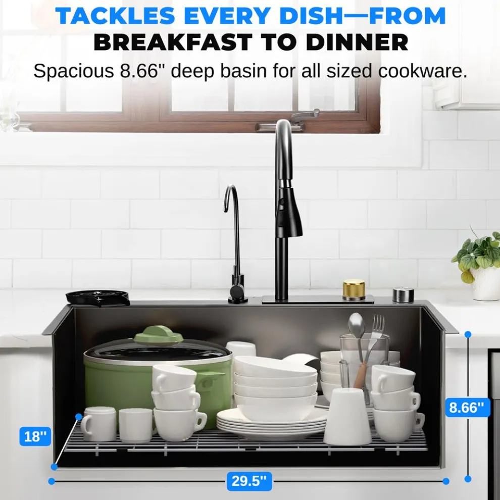 - Sink Dimensions (L x W x H): 29.5” x 18” x 8.66” -inches
