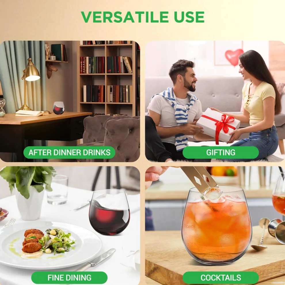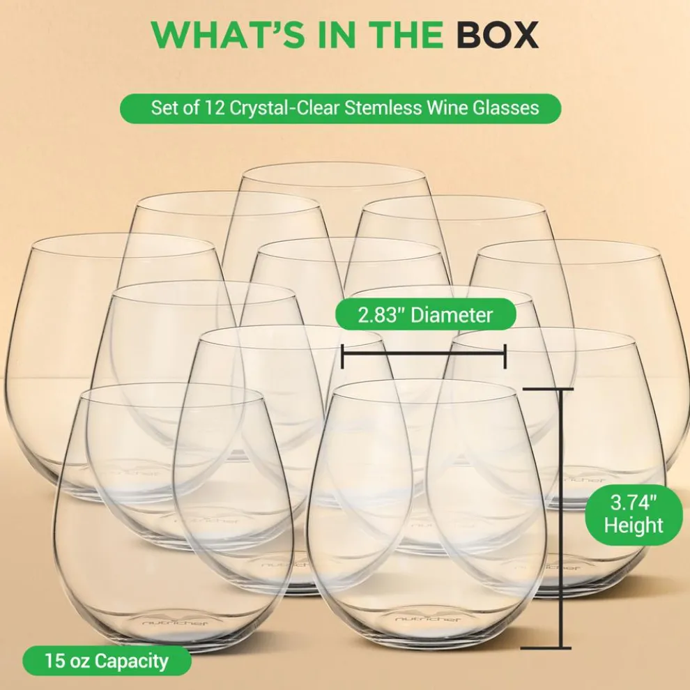 - 12 Pcs. of Crystal-Clear Stemless Wine Glass