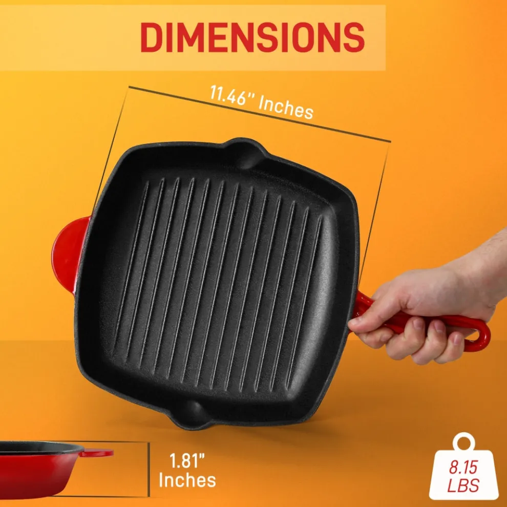 - Long Lasting, Heavy-Duty Cast Iron Grilling Pan
