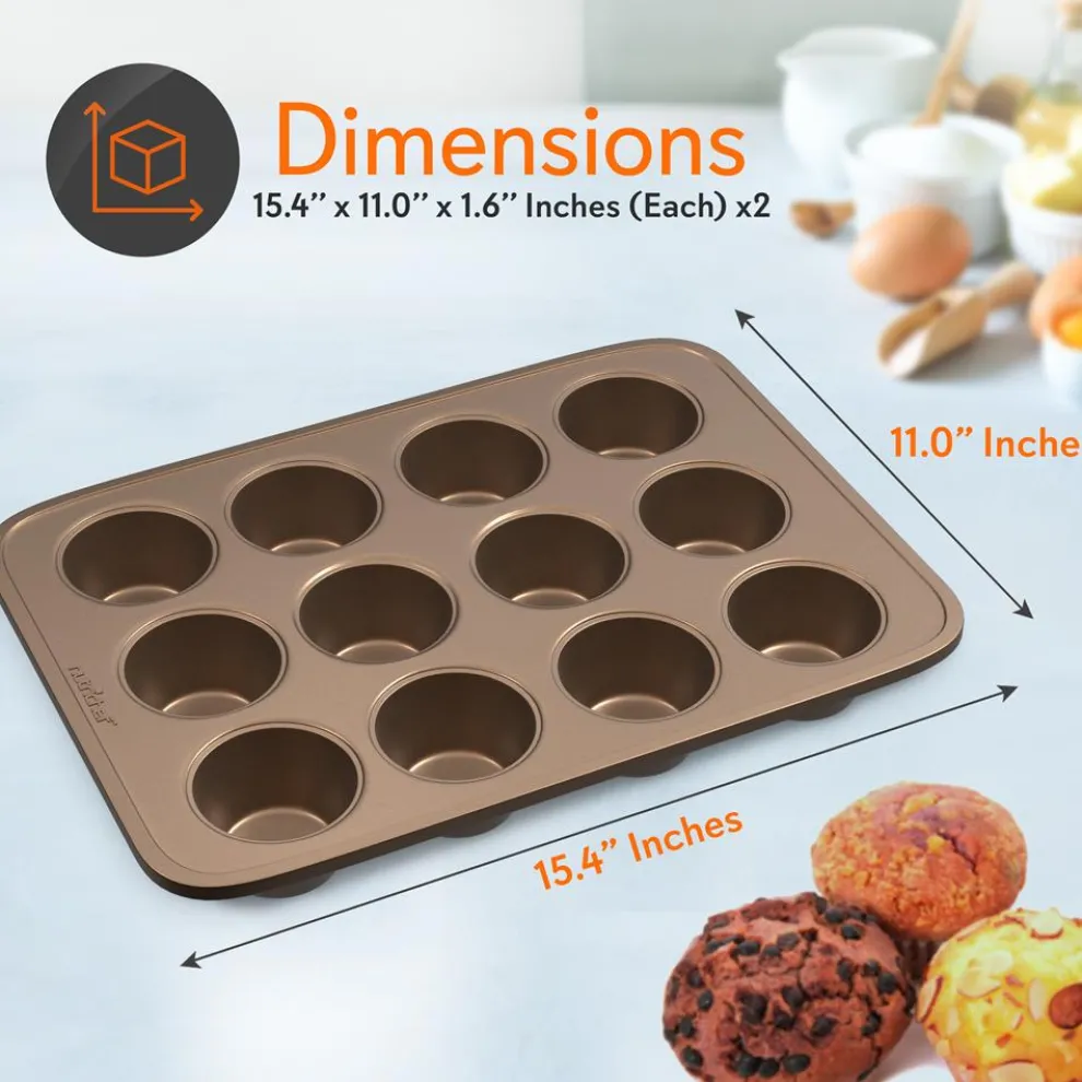 - Muffin Pan Size (L x W x H): 15.4’’ x 11.0’’ x 1.6’’ -inches (Each)
