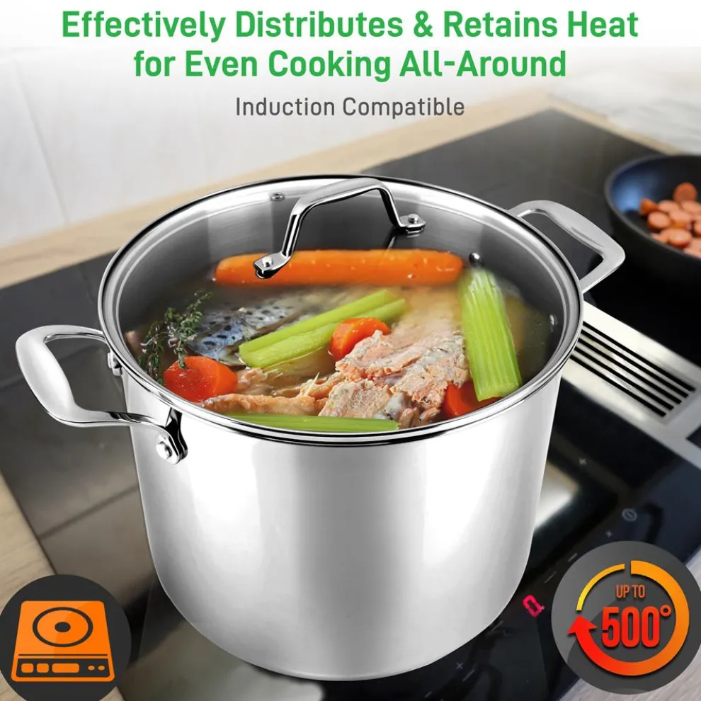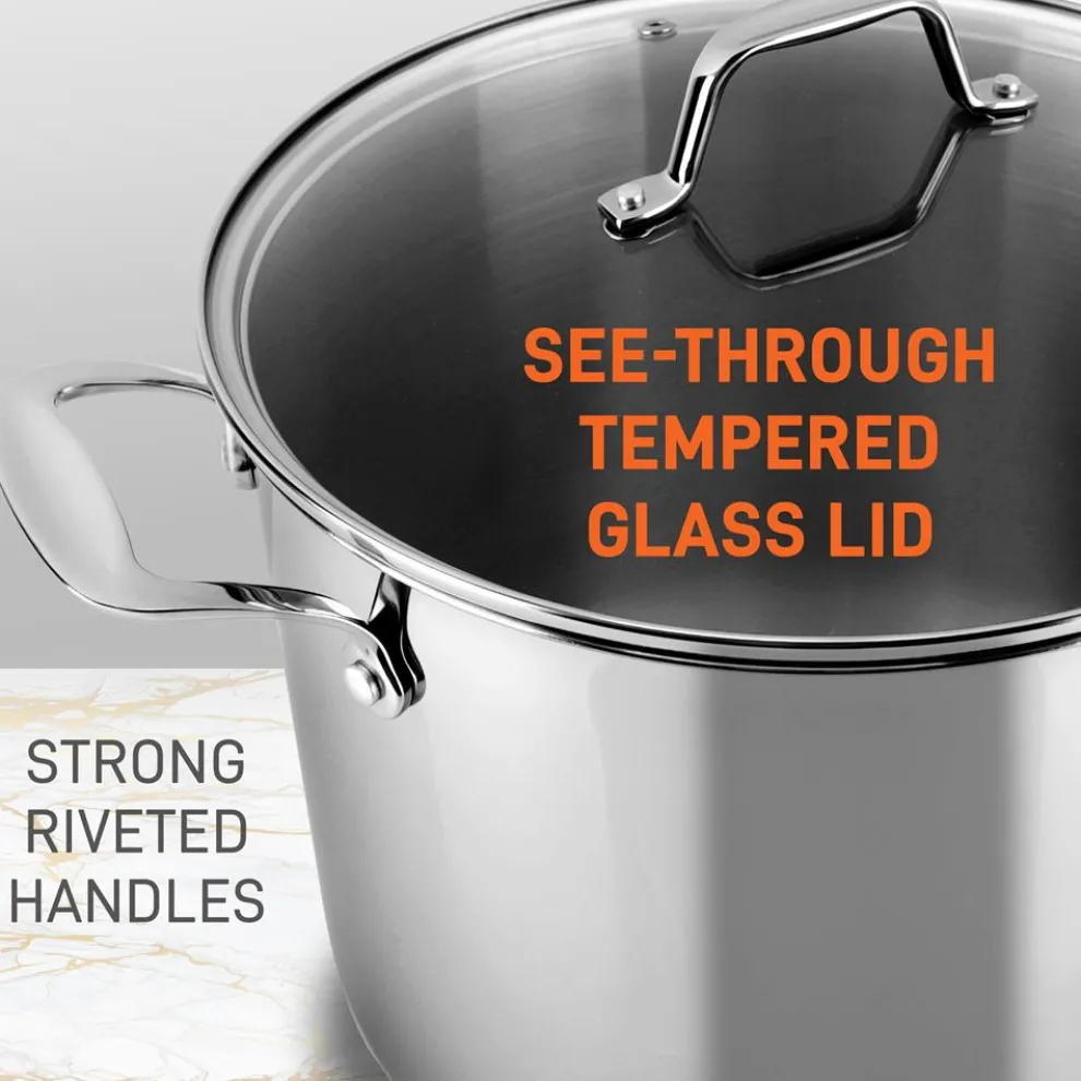 - Gas, Induction, Ceramic, Glass, and Halogen Cooktops Compatible