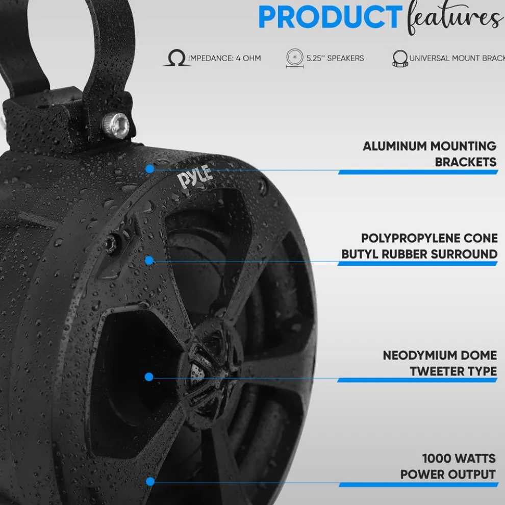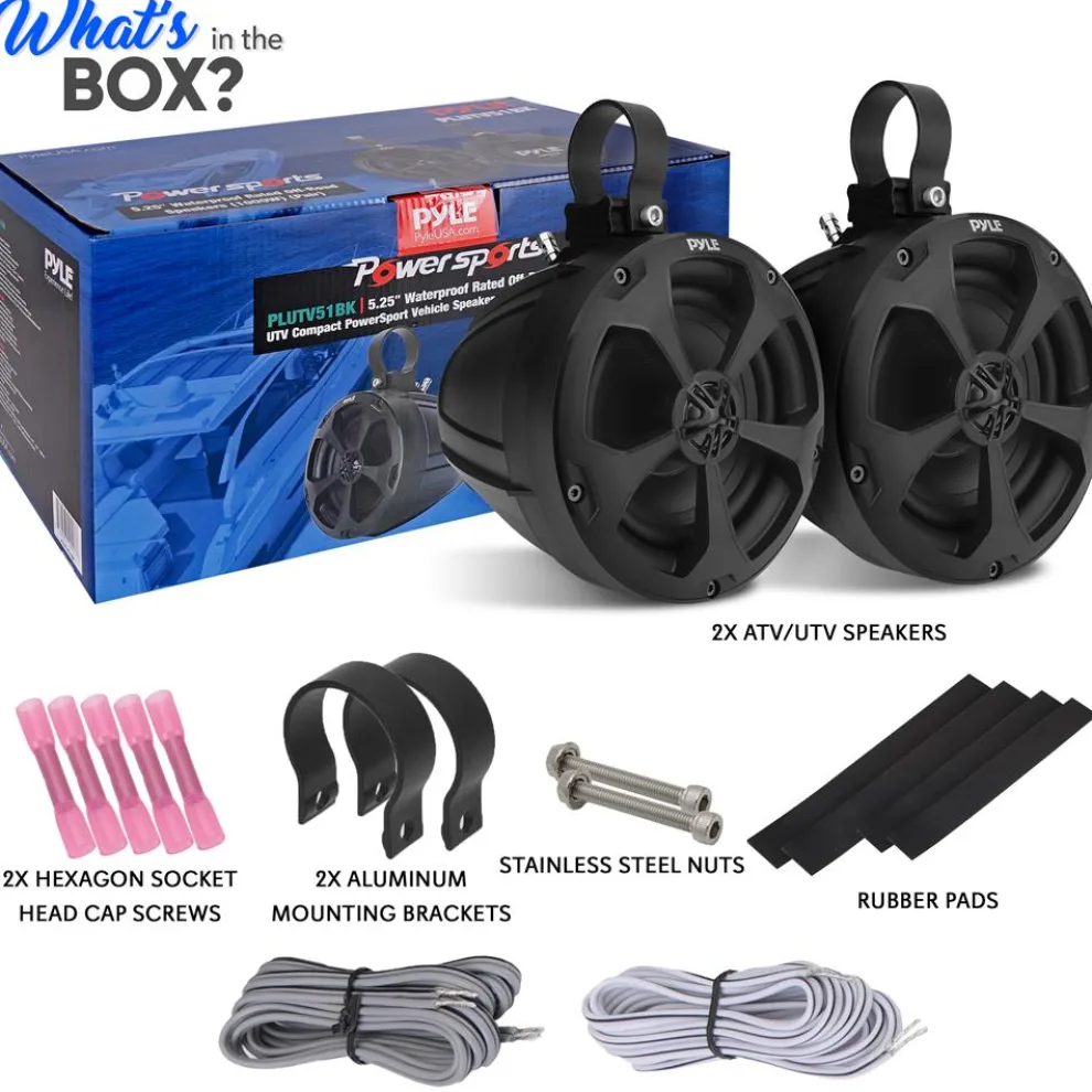 - Sound System: (2) x 5.25” Woofers + (2) x 1’’ Tweeters