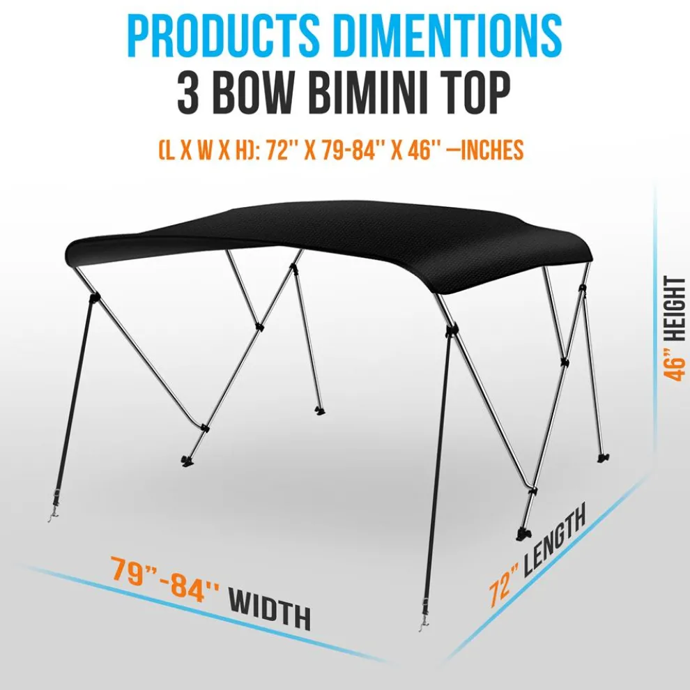 - 1 Diameter Aluminum Frame – Double-walled Main Bow Legs for Maximum Strength – 2 Straps and 2 Rear Support Poles – Very Easy to Install – Waterproof and UV Resistant in Marine Environment