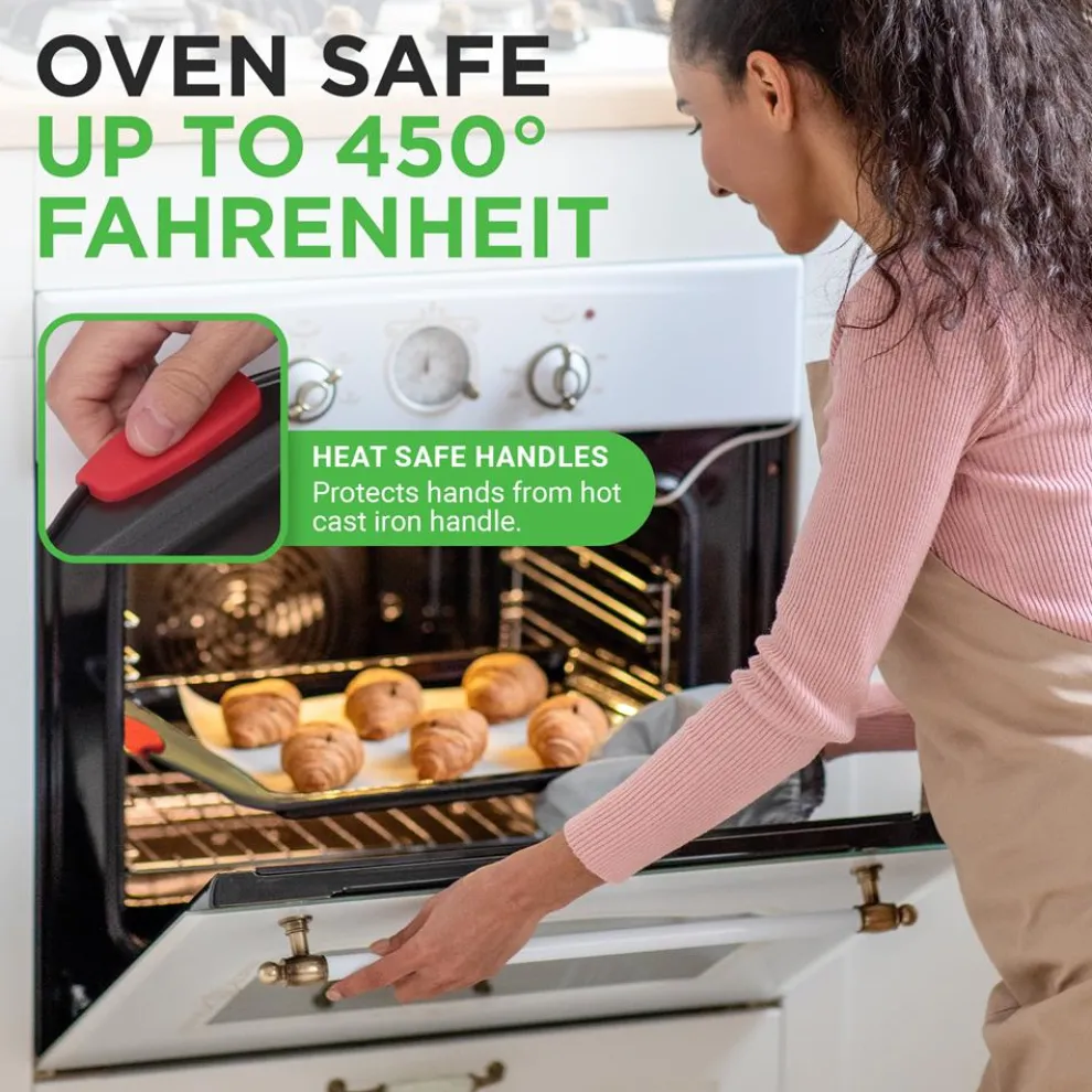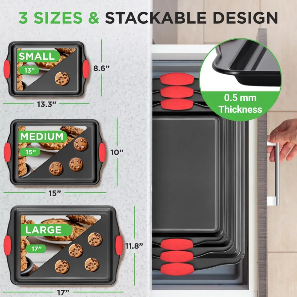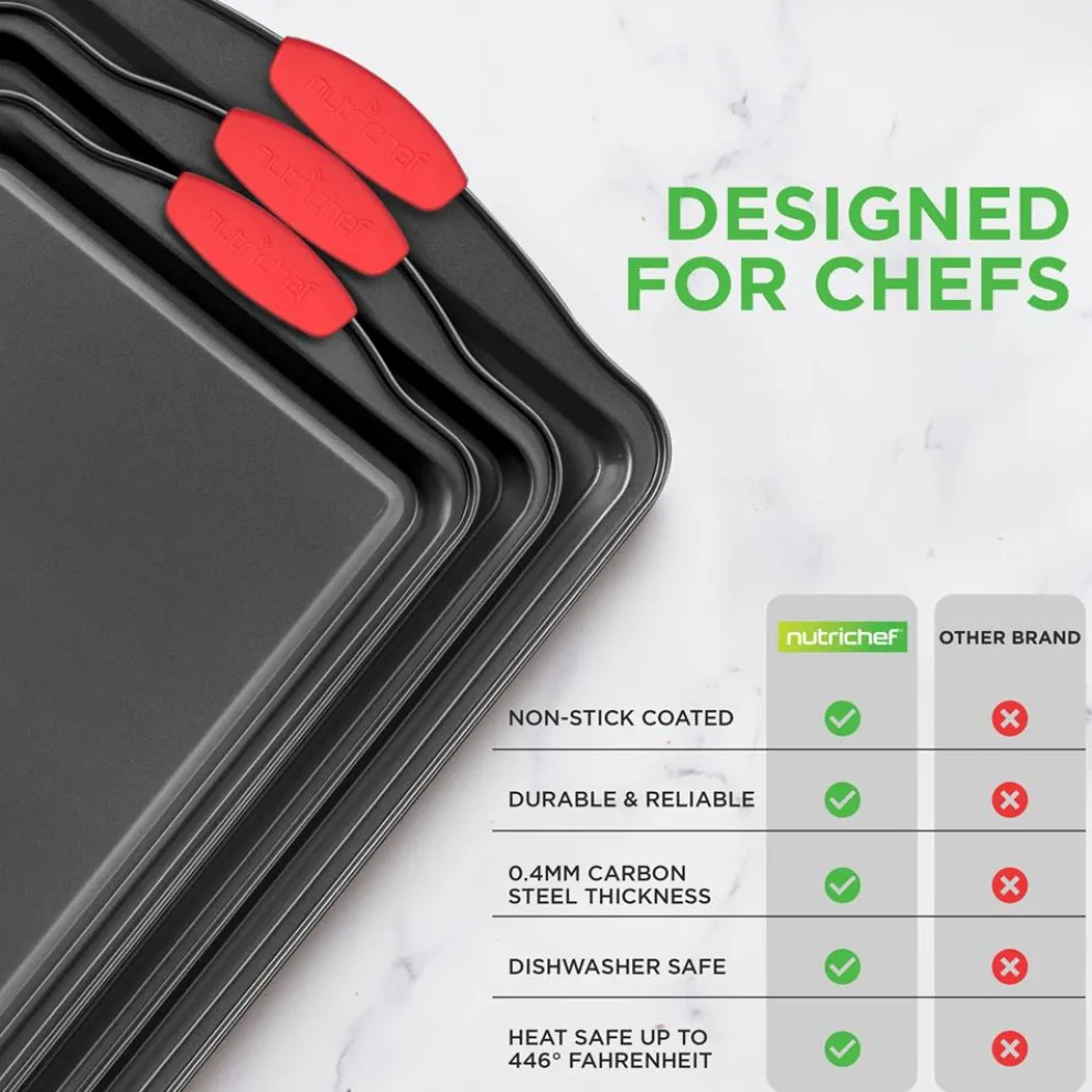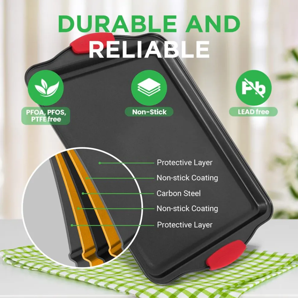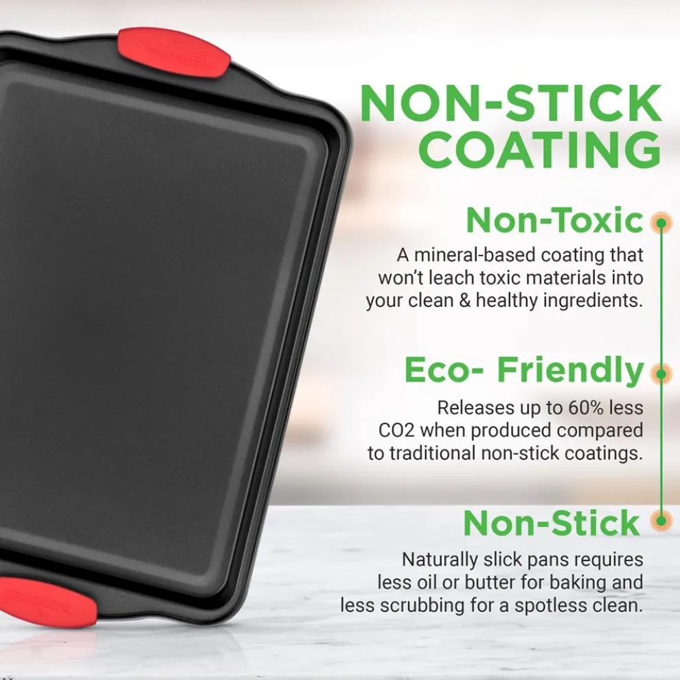 - Flexible & Nonstick Carbon Steel Bakeware Set With Red Silicone Handles