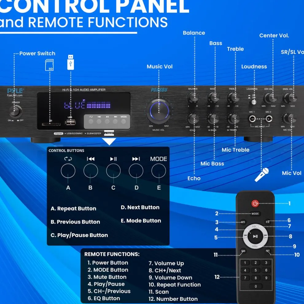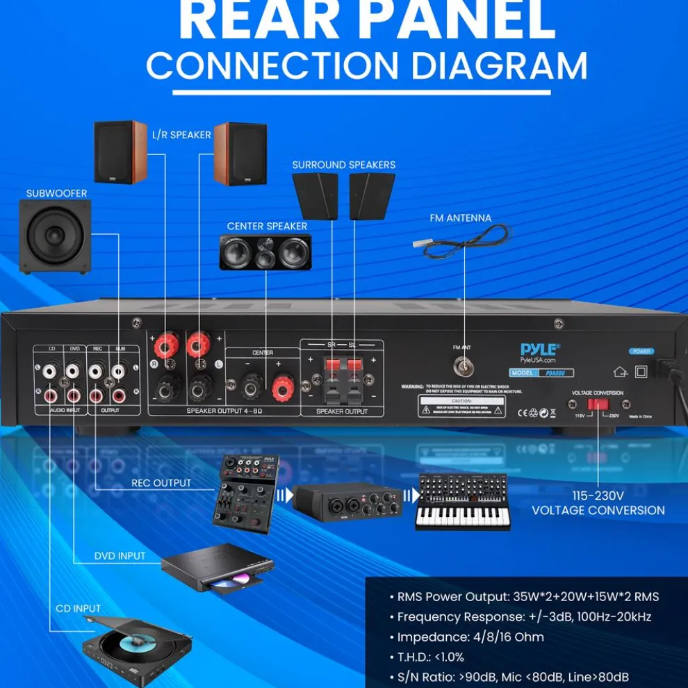 - RMS Power Output: 35W*2+20W+15W*2 RMS