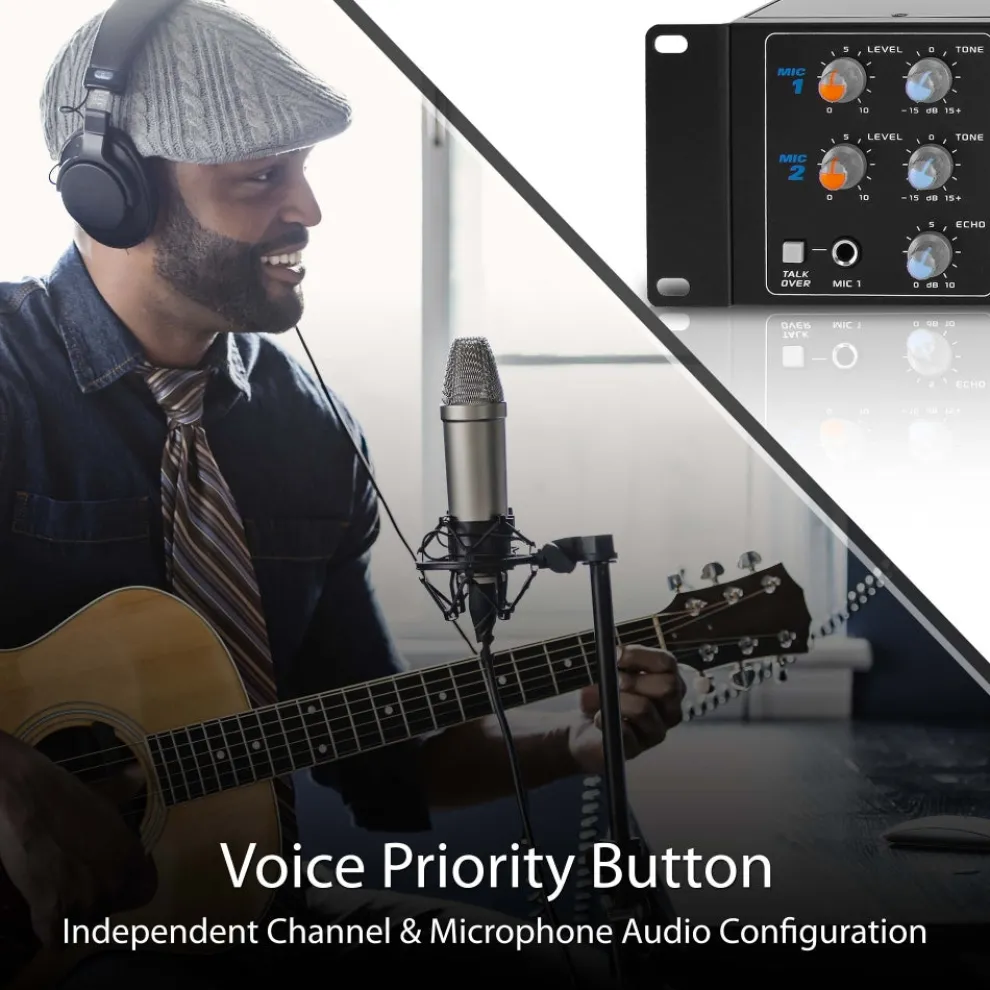 - Aux (3.5mm) Audio Jack(3) 1/4” Microphone Jacks (2 Rear, 1 Front)