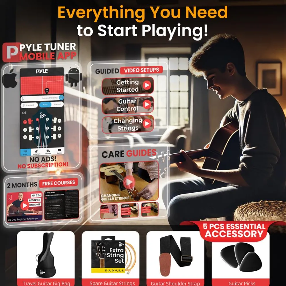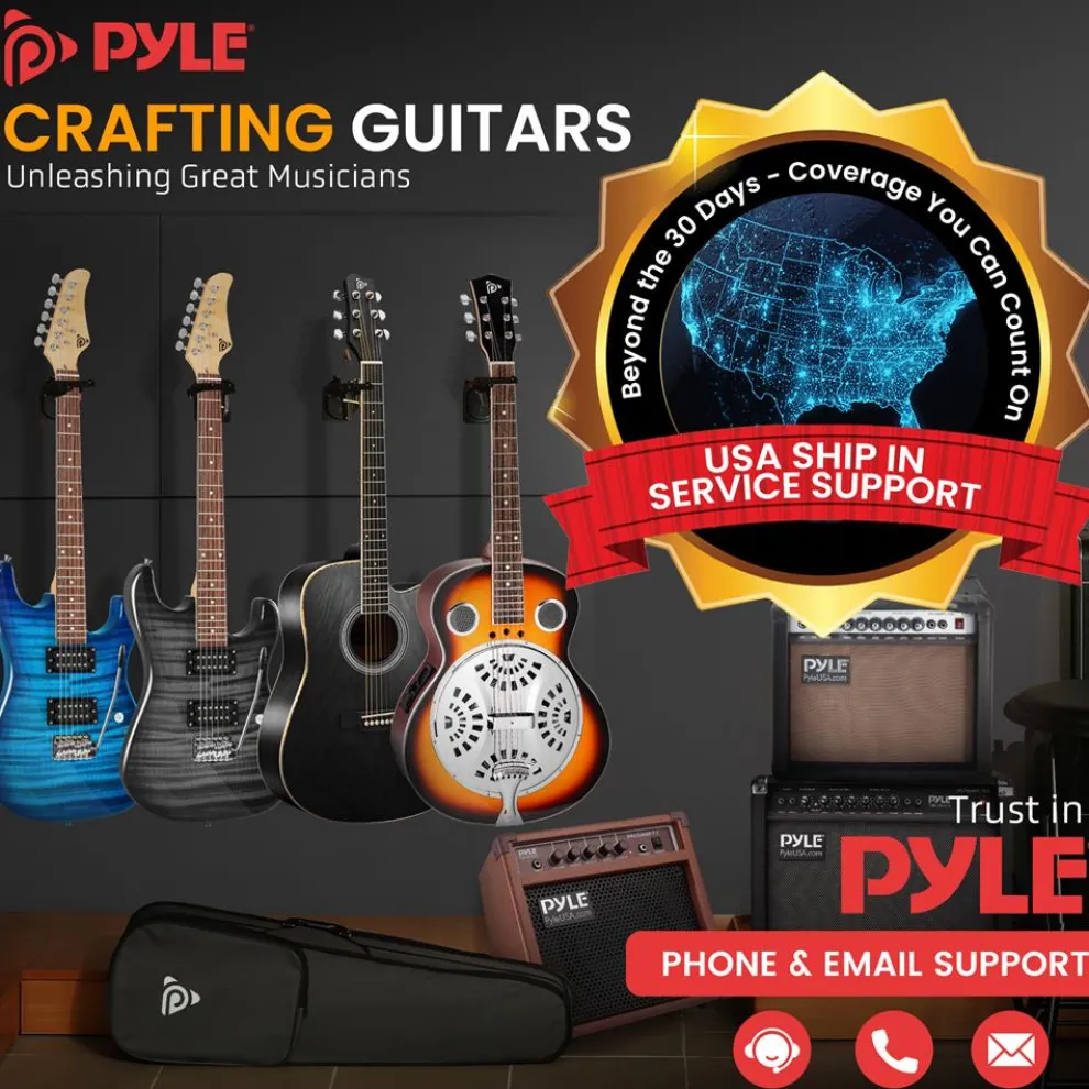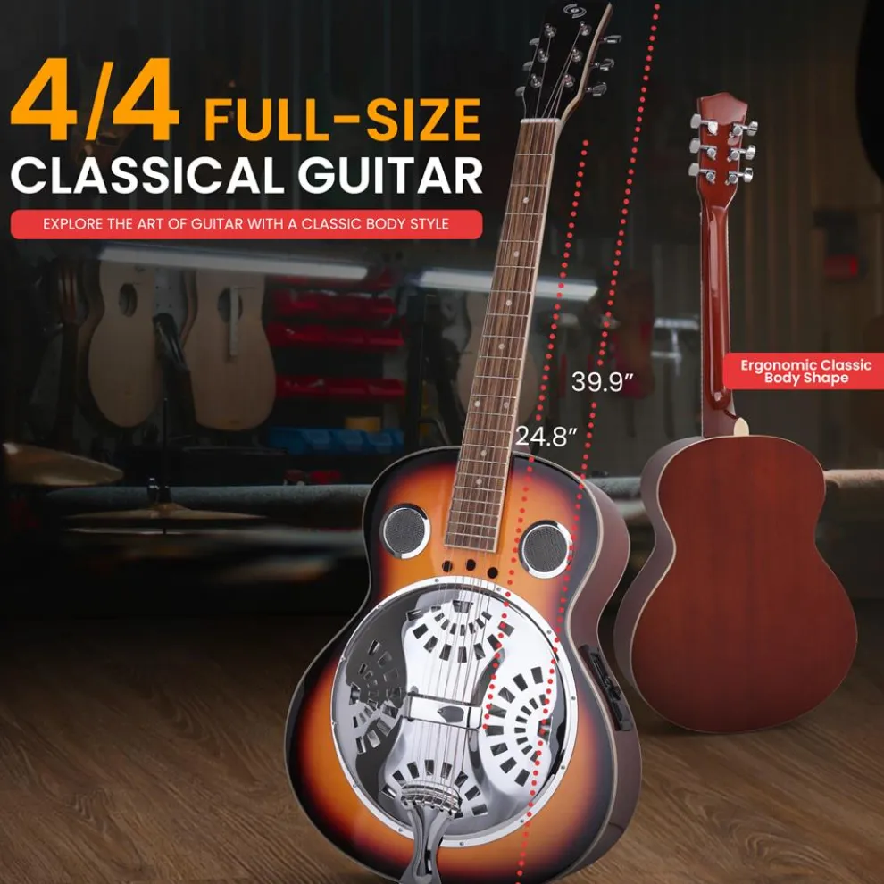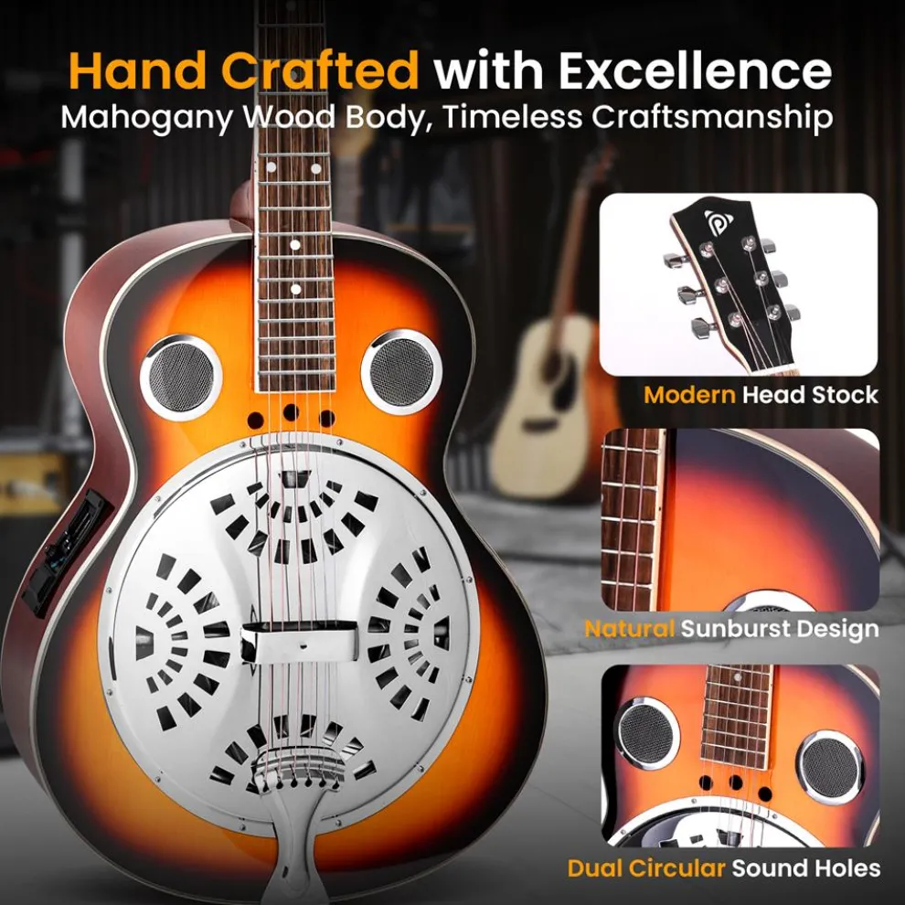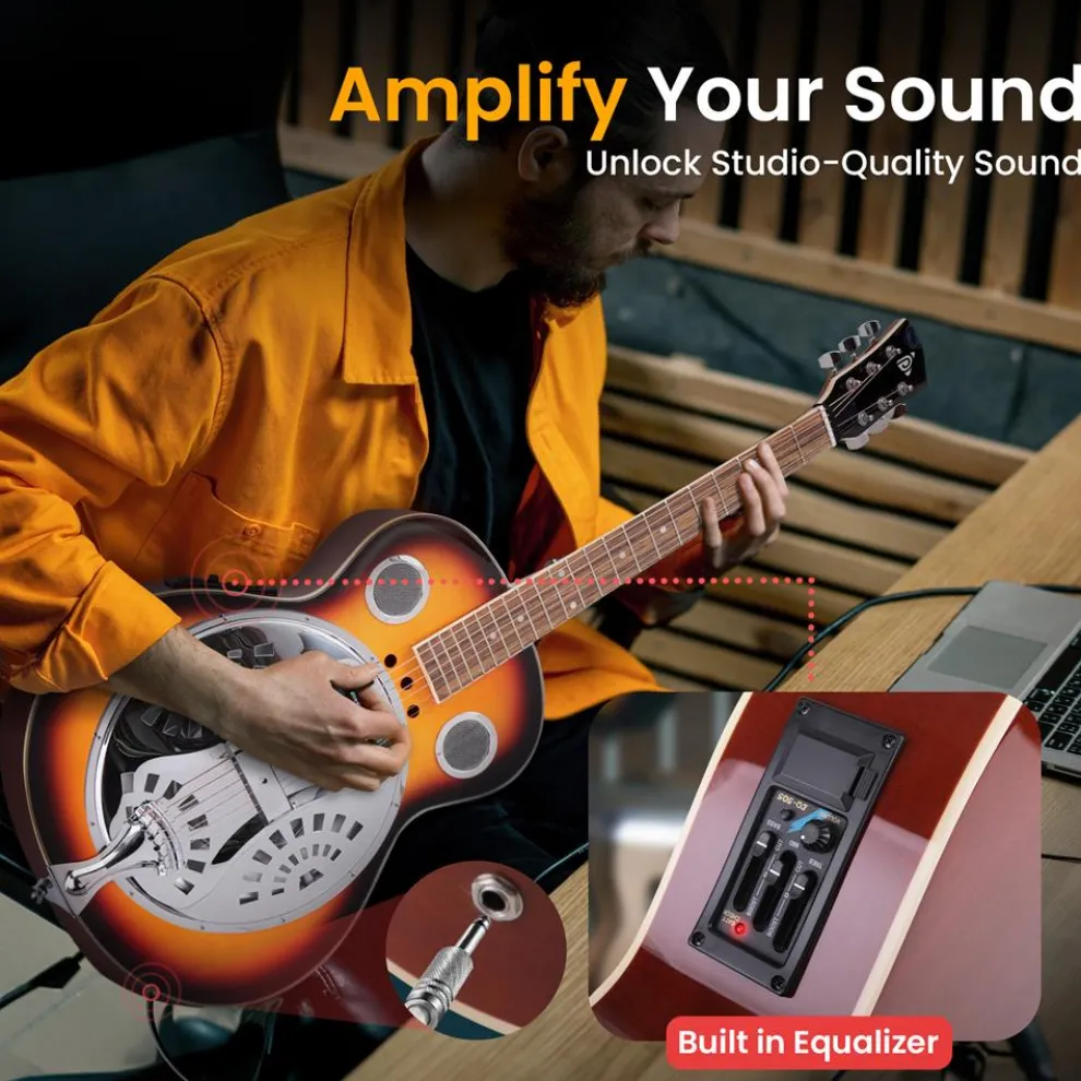 - Guitar Body Material: Spruce & Mahogany Plywood with White ABS Binding