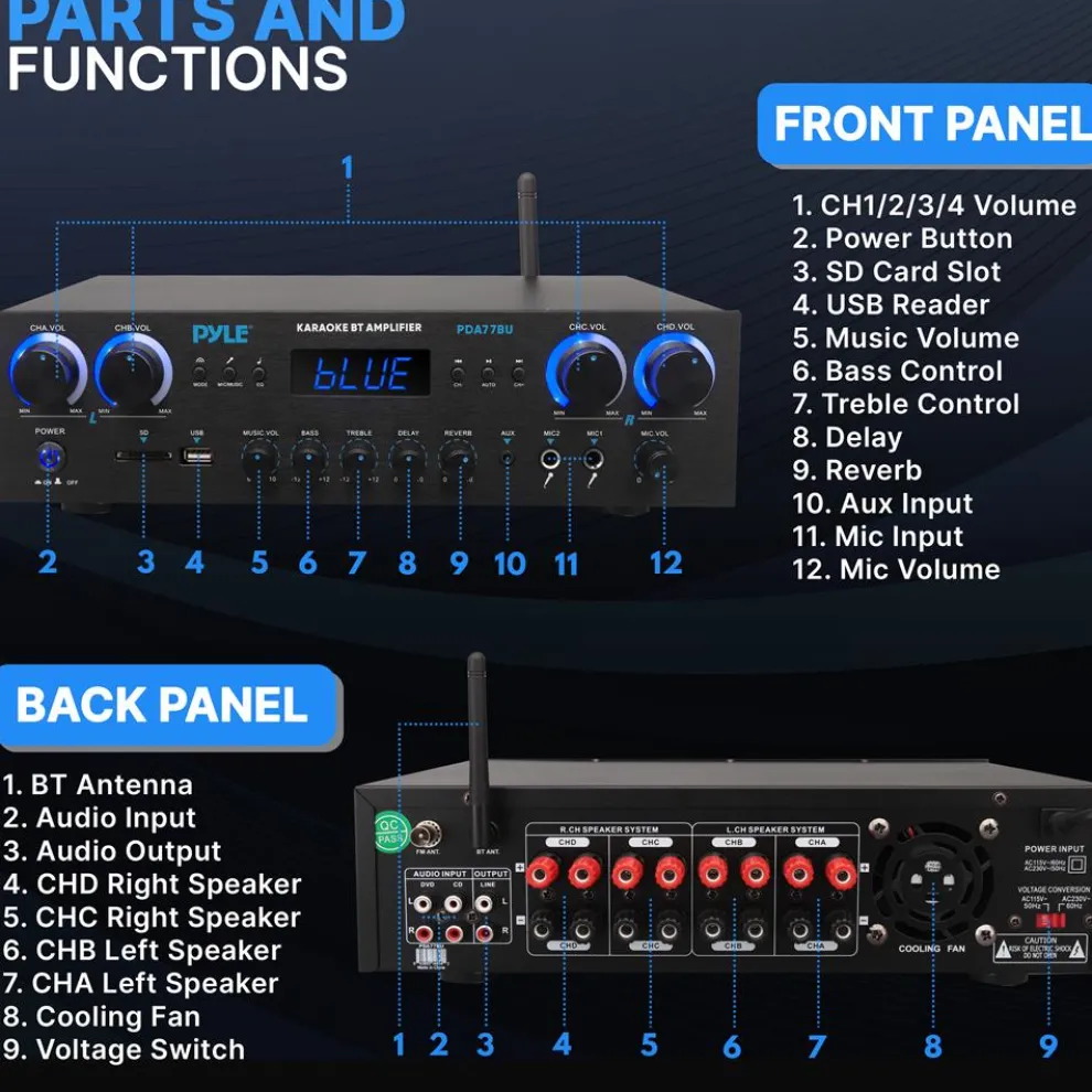 - Power Output: 800 Watt MAX (400 Watt RMS)