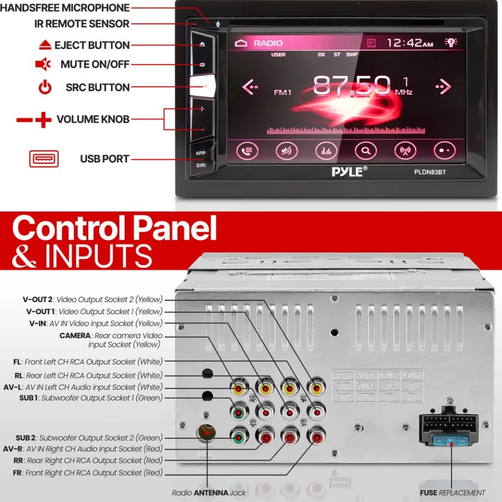 - 2 Pairs RCA, 1x AV Input, 2x Video Output, Camera Input