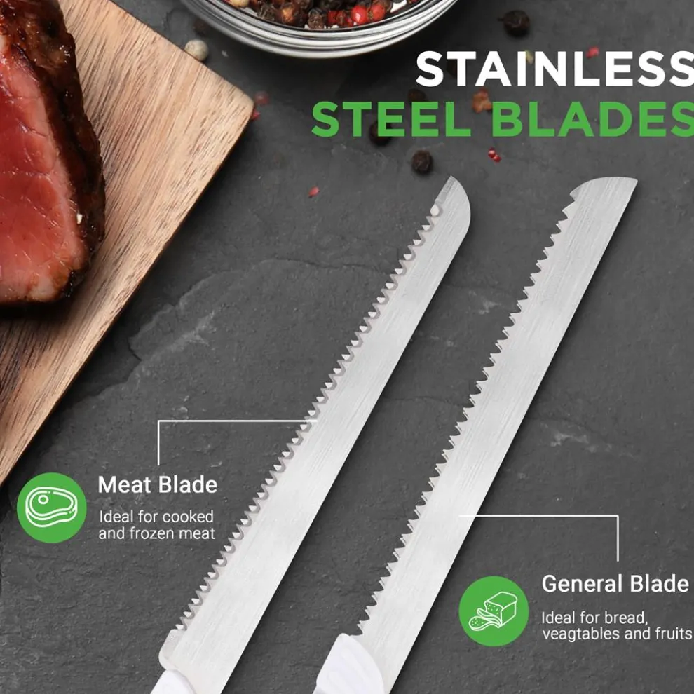 - Two Stainless Steel Blades for Meat Carving and Bread Slicing
