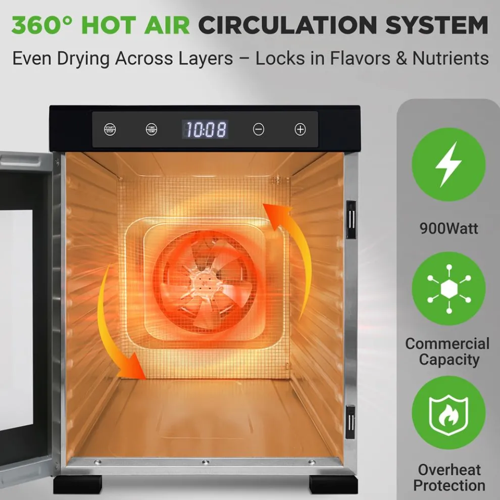 - Large Capacity with 10 trays and Up to 13 lbs. of Food Dehydrate at once