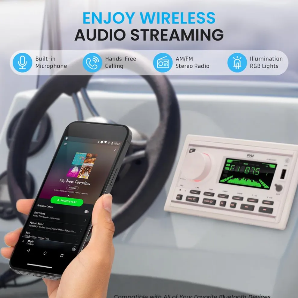 - AM/FM/MP3/USB/AUX Marine Stereo Receiver