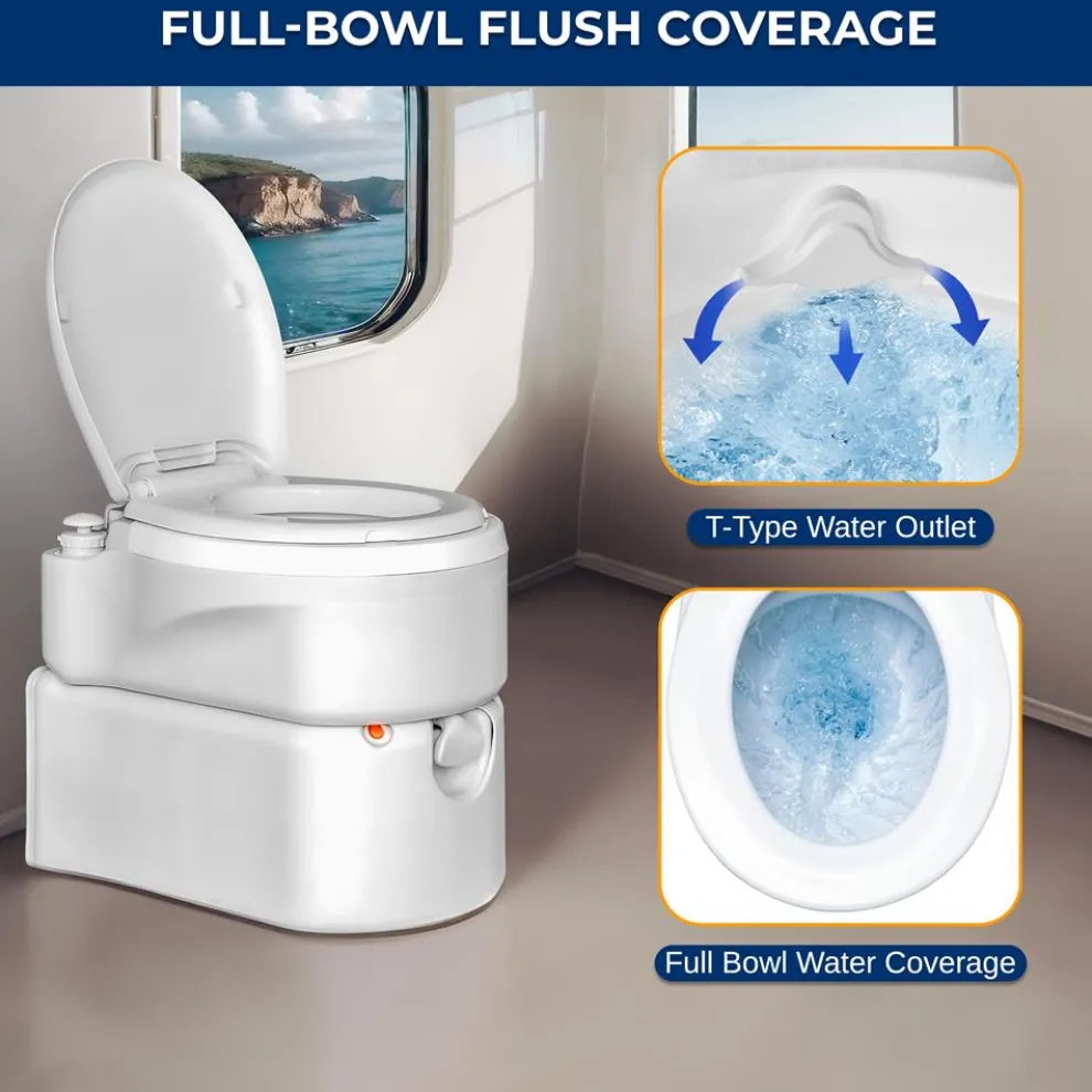 - Flushes and Rinses Bowl with Fresh Water Reserve