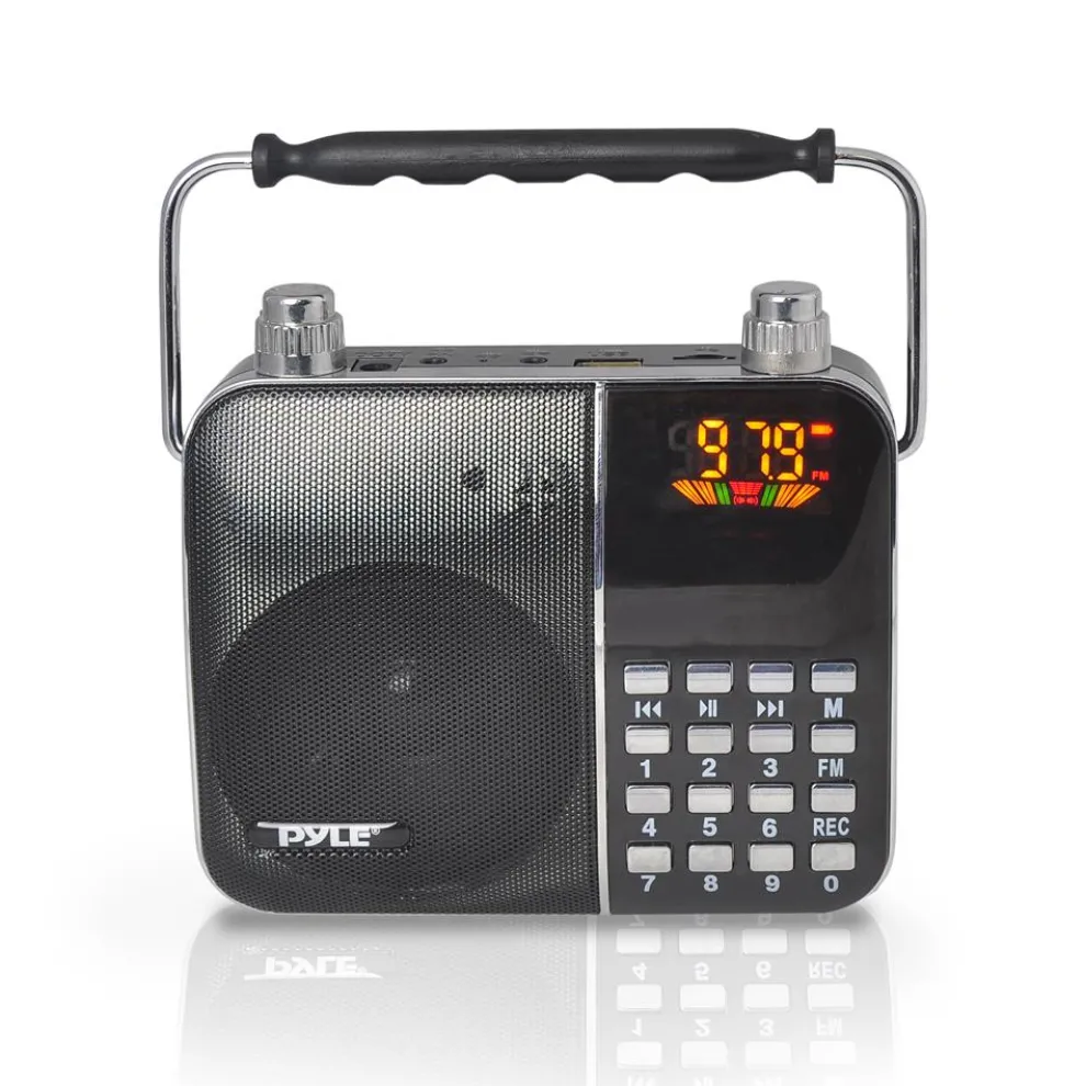 - Built-in Rechargeable Battery – Headset Microphone Included – Aux (3.5mm) Input – Ability to Connect & Stream External Devices – MP3 Digital Audio File Compatibility – USB & Micro SD Memory Card Readers – MAX Flash Memory Support: 32GB