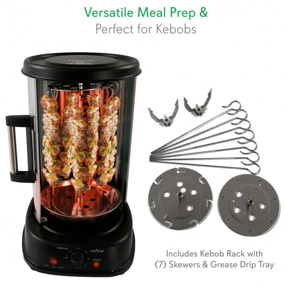 - Includes Kebob Rack with (7) Skewers & Grease Drip Tray
