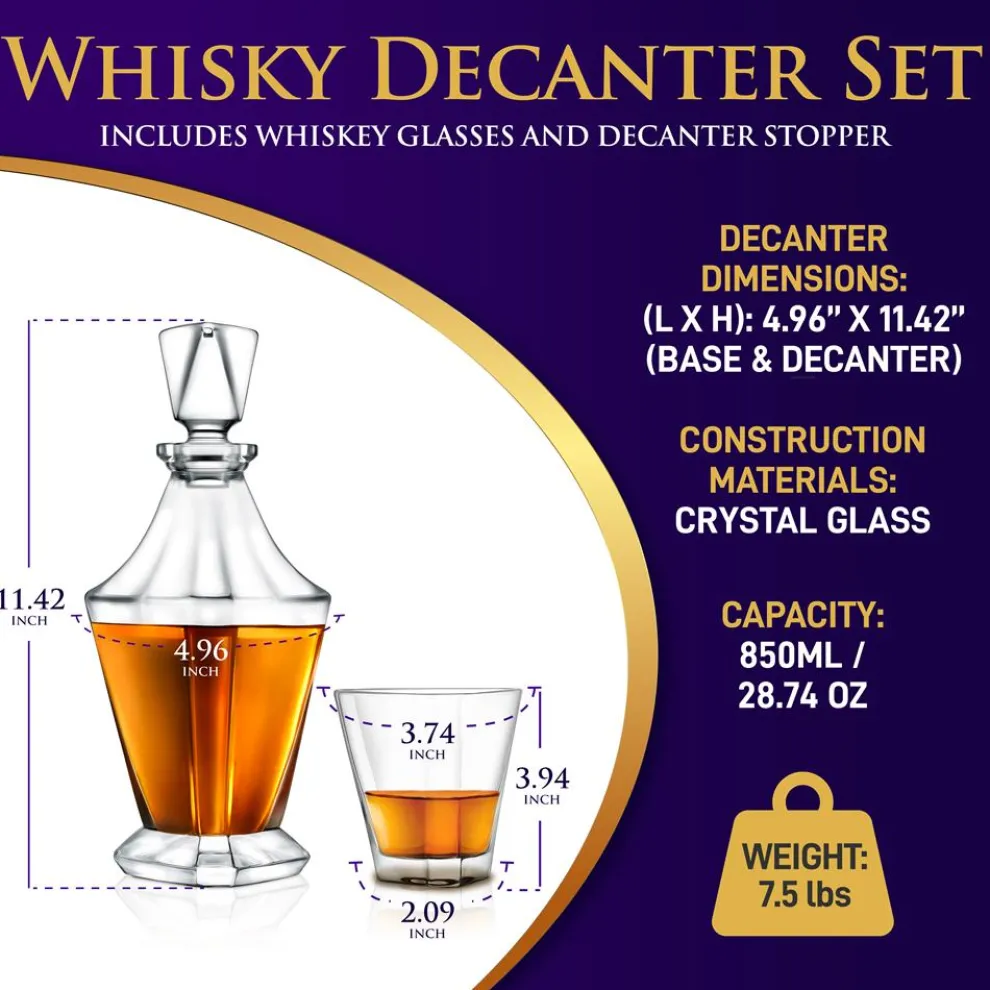 - Decanter Dimensions (L x H): 4.96’’ x 11.42’’ -inches (Base & Decanter)