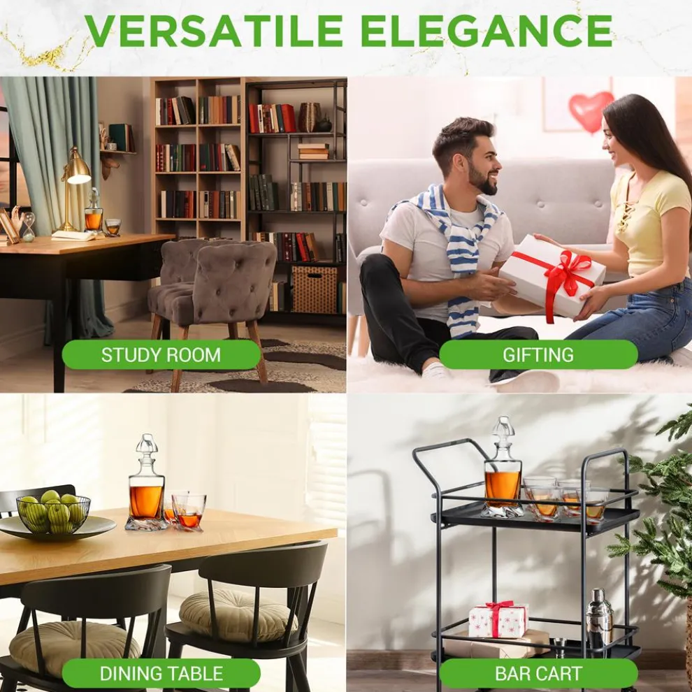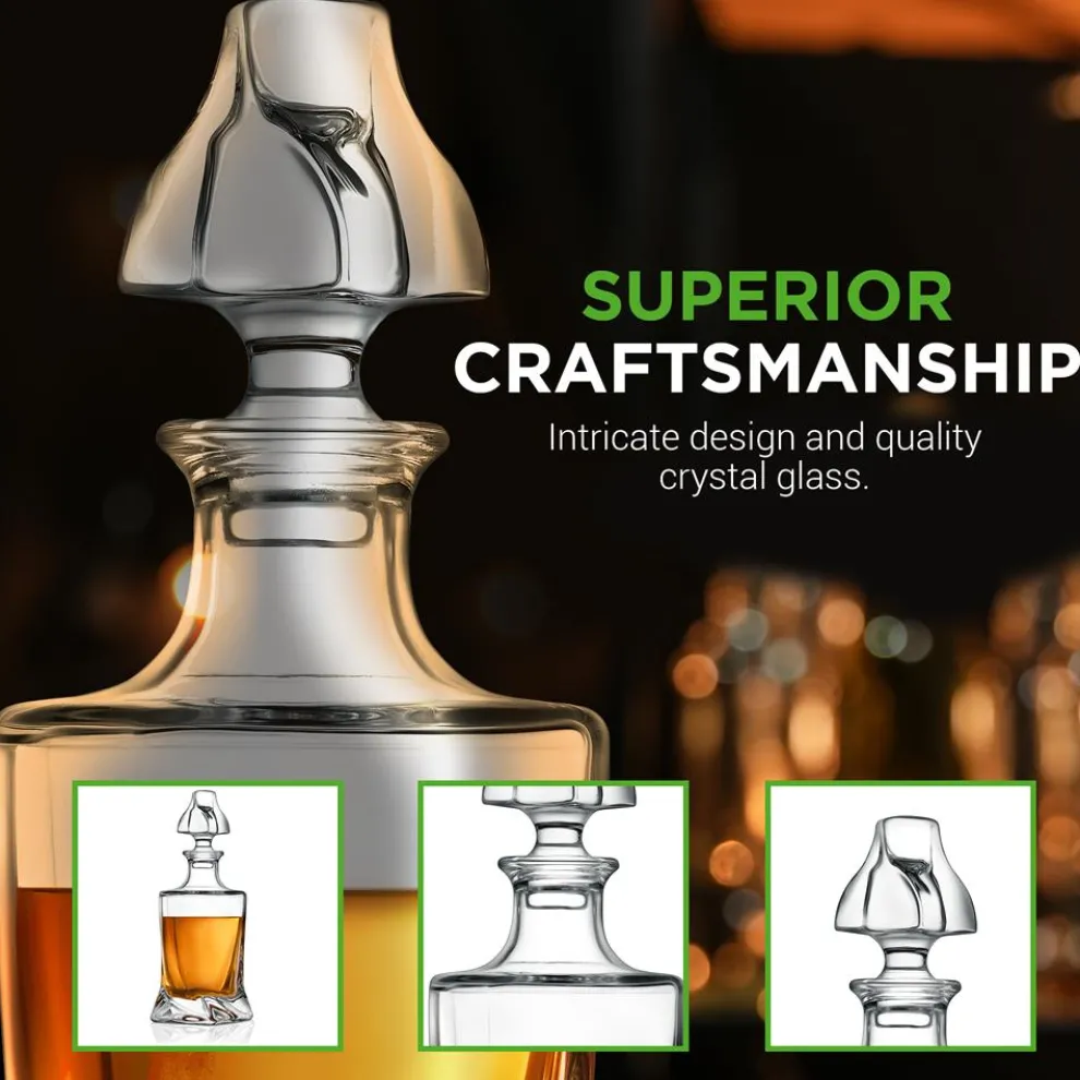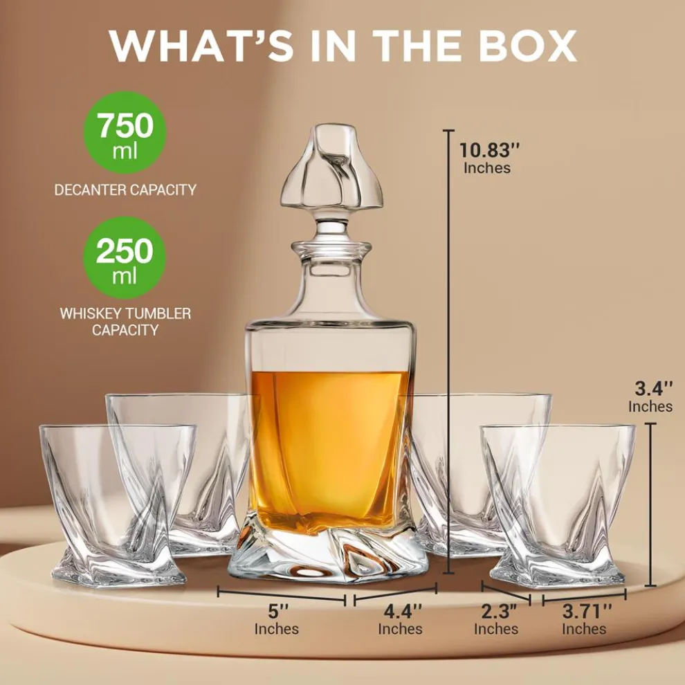 - Decanter Dimensions (L x W x H): 5’’ x 4.41’’ x 10.83’’ -inches (Base & Decanter)
