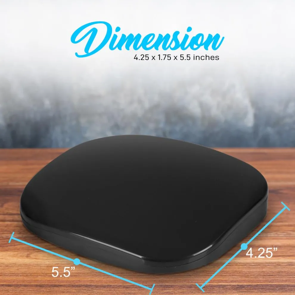 - Dimensions: 4.5” x 3.7” x 0.8”