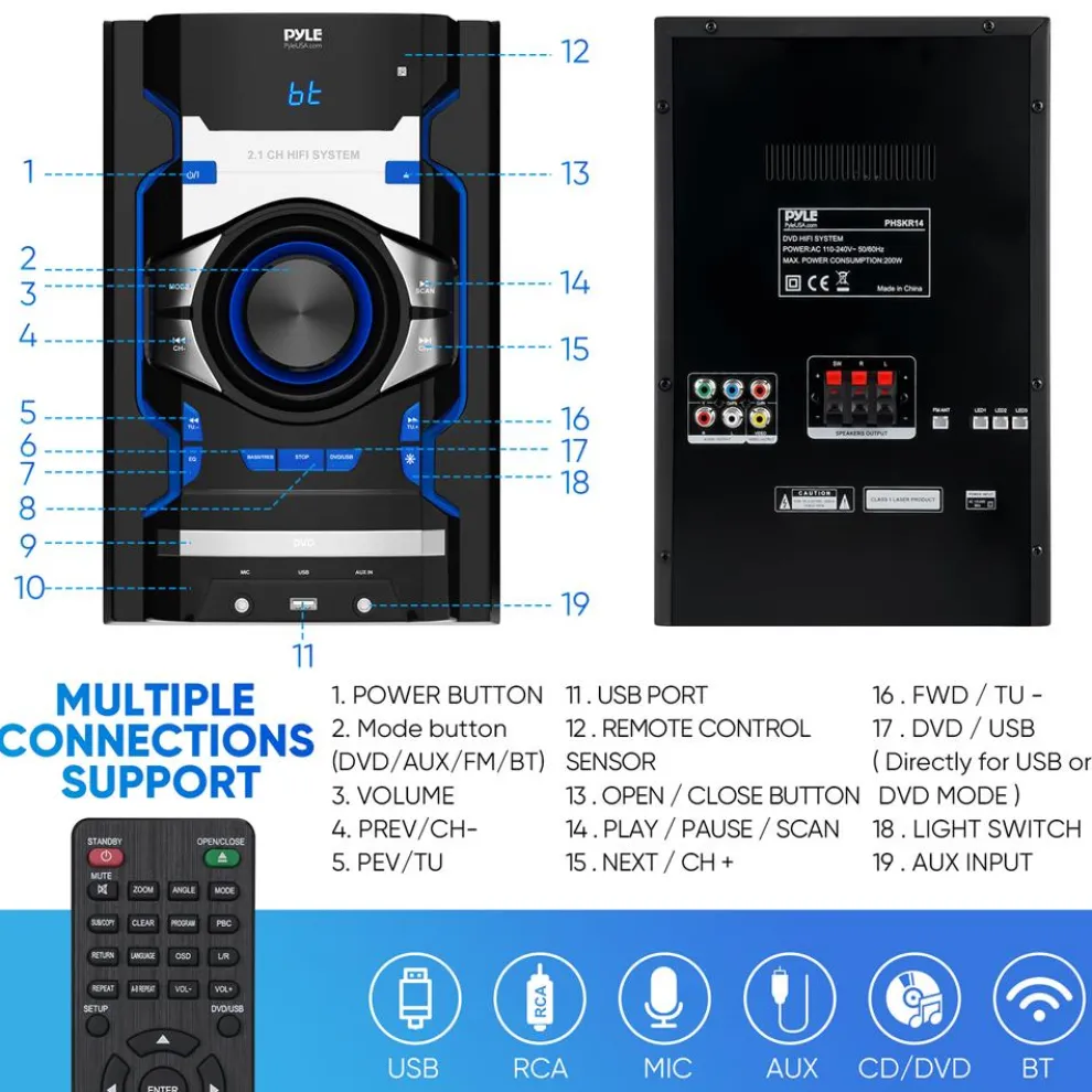 - DVD/BT/FM Radio/USB/AUX/Karaoke
